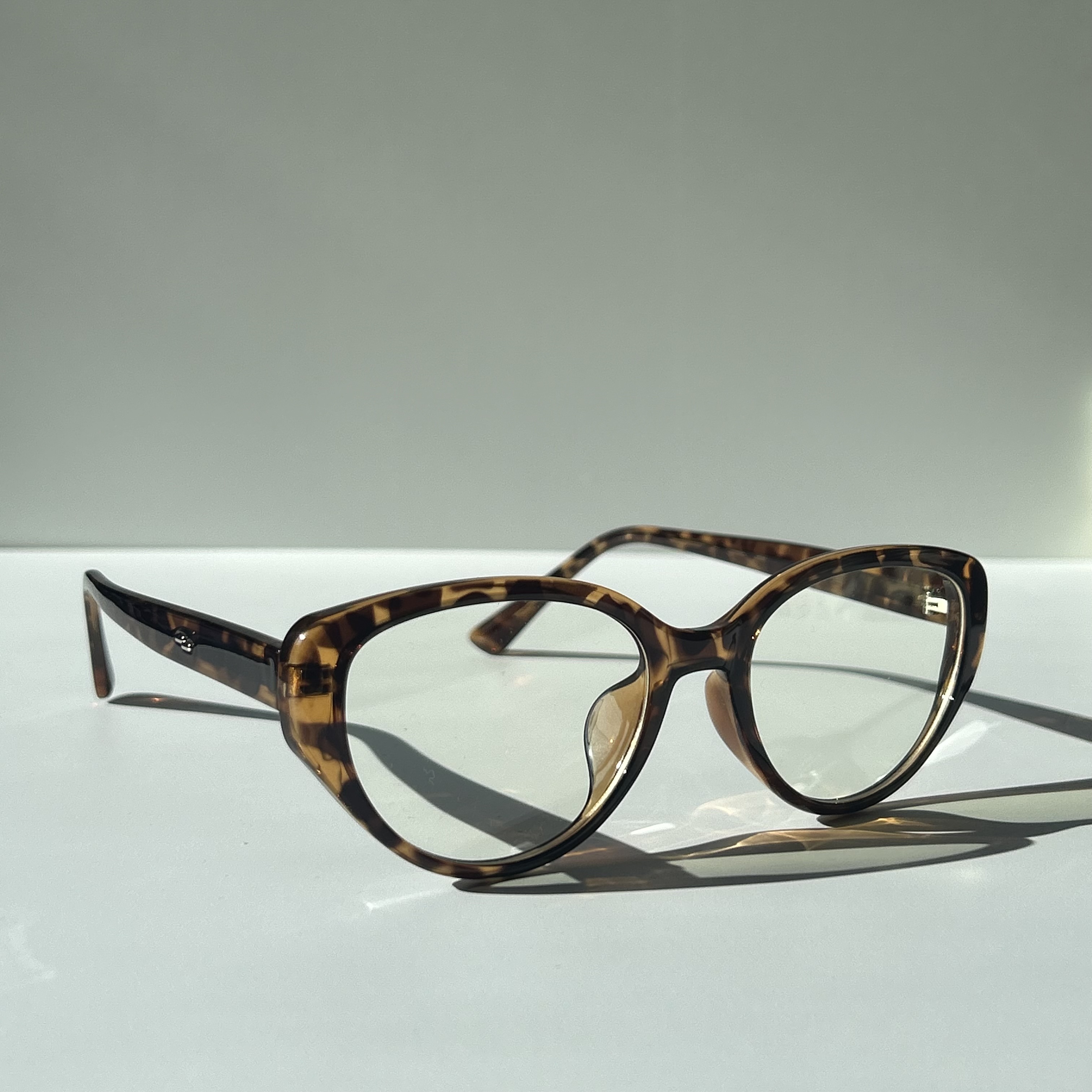 กรอบ cat-eye ช่วยยกหางตาให้ดูมีชีวิตชีวา ลาย tortoise เพิ่มความลึกให้ลุคโดยไม่ต้องแต่งมาก เหมาะกับคนที่อยากให้แว่นพูดแทนตัวเอง